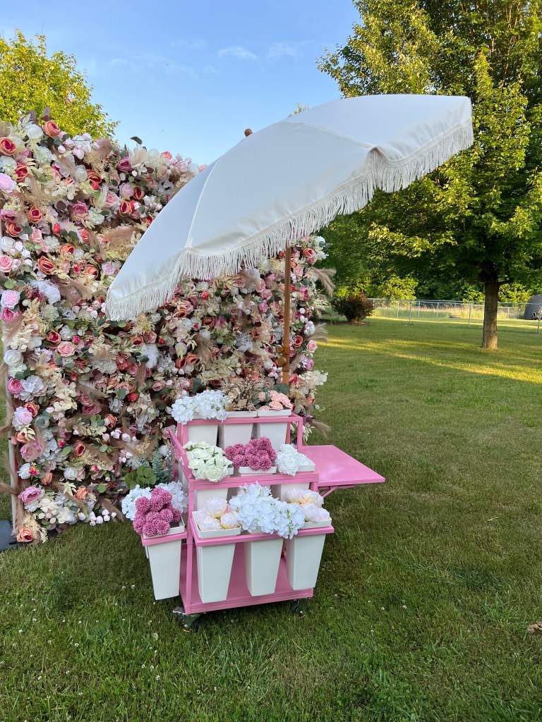 “I rented a flower wall and flower cart for my daughter’s bridal shower. The flower wall was stunning, and the guests loved making their own bouquets from the flower cart. It really added a wow factor! I can’t say enough good things about this company! Melissa and her team did such a great job with communication and setting it all up and taking it down after the shower. Everything was perfect!” ~Pamela