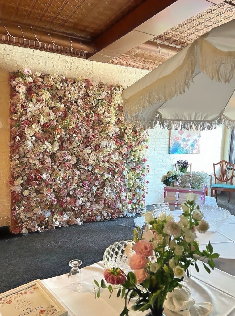 “I booked three flower walls for my bridal shower this past weekend, and I was absolutely blown away by how stunning they were and the beautiful detail they added! We hosted a tea party, and the pink pony flower bar and blush crush flower wall were the perfect touches for our “Tea with the Bride-to-Be.” The setup and teardown were completely seamless— I didn’t have to worry about a thing. I loved working with Wallflower Rental so much, we’ve already booked them for our wedding too!” ~Nadine H. (Bride To Be)