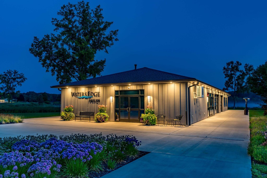 Experience your wedding at The Pavilion at Waters Edge. Nestled along the green at picturesque Waters Edge Golf Course in Fremont, Michigan, this modern and versatile venue provides the perfect backdrop for your special day. Let The Pavilion at Waters Edge help set the stage for your momentous celebration.